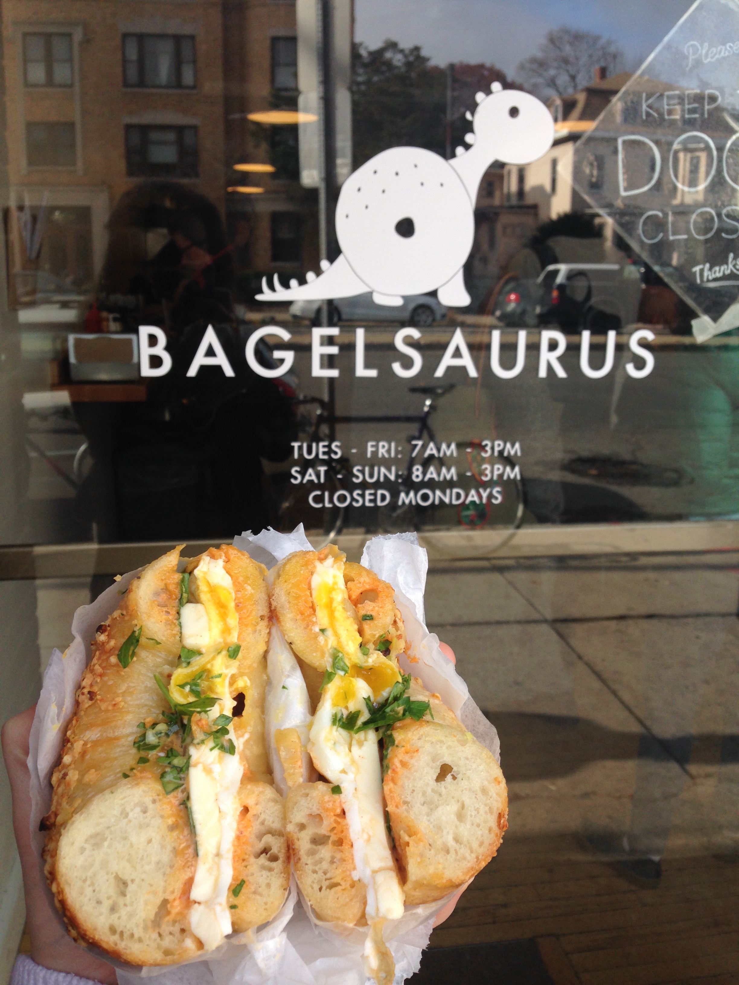 Okay I know this isn’t a donut I’m not an IDIOT trying to pull a fast one on you, but this Bagelsaurus breakfast sandwich is also in Boston up by Harvard and if you get a chance to try one please don’t pass it up. This was the EGGSPAĆOLA – free range over-medium egg, Maplebrook feta, pimento aioli, parsley gremolata. I didn’t even know what half of those ingredients were which meant it must be fancy so I ordered it. I also got the black olive bagel with rosemary cream cheese and it was DIVINE. With a name like Bagelsaurus, why wouldn’t you stop?